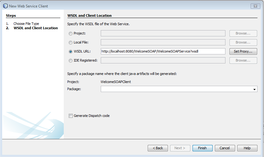 Θα δημιουργήσουμε μια τοπική εφαρμογή GUI πελάτη σε Java κατόπιν θα προσθέσουμε μία αναφορά στην Web υπηρεσία στο έργο, έτσι ώστε ο πελάτης να μπορεί να έχει πρόσβαση στην Web υπηρεσία μας. Όταν προσθέσουμε την αναφορά, το IDE δημιουργεί και μεταγλωττίζει τα αντικείμενα από την πλευρά του πελάτη. Ο πελάτης καλεί έπειτα μεθόδους σ’ ένα αντικείμενο της κλάσης διασύνδεσης τελικού σημείου υπηρεσίας, η οποία χρησιμοποιεί το υπόλοιπο μέρος των αντικειμένων για να αλληλεπιδράσει με την Web υπηρεσία.